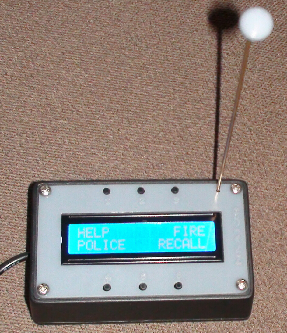The system is a small display with a long range radio (6Mi/10Km), six buttons and an alarm buzzer. Pressing one of the buttons sends a signal to your neighbors and their alarms will sound. Your name, address, phone number and the type of help you need will be displayed on all your neighbors systems.